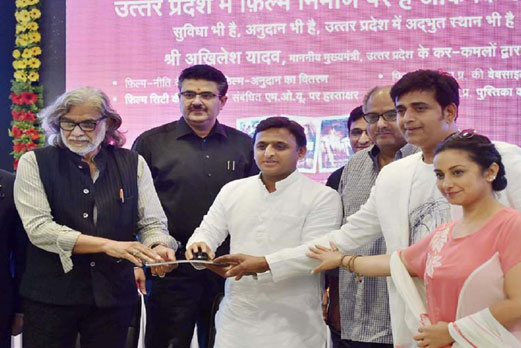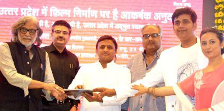 Launching of the Official Website of UP Film Bandhu(www.filmbandhuup.gov.in) on 16.05.2015 by Ex-Chief Minister in the presence of Bollywood Personalities Bony Kapoor, Muzaffar Ali, Divya Dutta & Ravi Kishan